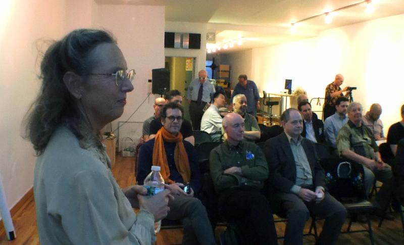 A week later the usual suspects reconvened for the regular monthly NYSA meeting on March 18, again back at The Penumbra Foundation. This was technologically the most ambitious meeting yet for the Association and its new 4k stereo monitor. The night began with a Skype link from Germany with Ingo Nadler, president o3Doo.com, a global pay-per-view provider of stereo 3D content. He described his exciting new project and invited members of the NYSA to submit their works.