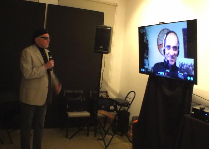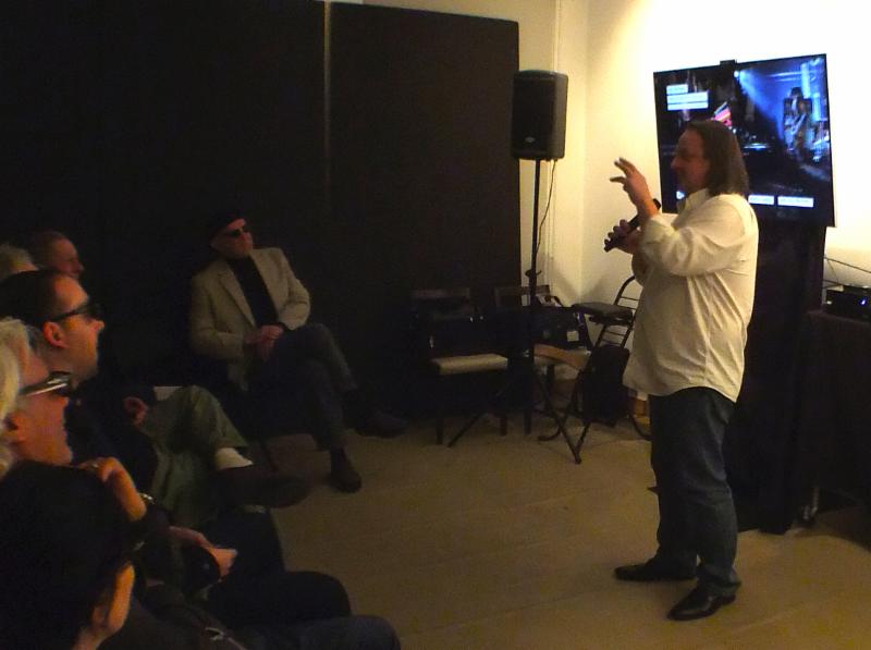 But wait, there's more! We are only halfway through the meeting. For the next hour, we met filmmaker and musician Pierre Lamoureux, who along with his brother Francois, made two 3D music documentaries. He showed clips from Pat Metheny: The Orchestrion Project and Satchurated-Joe Satriani in Concert in 3D (both available at our NYSA Amazon Store)and a sample from his upcoming 3D project, Flamenco Hoy! | Pierre Lamoureux presents clips from his 3D films to the NYSA March 18, 2015 | Pierre gave a fascinating talk about his entry into the world of 3D filmmaking. After making many 2D music films for various artists, he was asked about shooting Pat Metheny's Orchestrion project in 3D, something visually stimulating that lends itself perfectly to the stereo format. Knowing that working in 3D has its own set of rules, he set out to discover the 3D dos and don'ts using a Fuji W3 and shooting and editing hours of footage. Lamoureux said, "I saved tens of thousands of dollars on professional stereo rigs by learning important lessons with the W3 first." Those lessons apply to shooting (don't place objects in the near foreground) and to editing (quick, MTV style edits don't work). The result is a fluid, encompassing audio/visual experience. Satchurated was slightly different because it included a live audience and full band, so it presented fewer editing options and more pressure to capture the concert live from many angles. Flemenco Hoy presented similar challenges as they had only one live performance and virtually no editing possibilities due to the nature of this unique music/dance art form. The evening concluded with Pierre answering questions from NYSA members about his many projects.